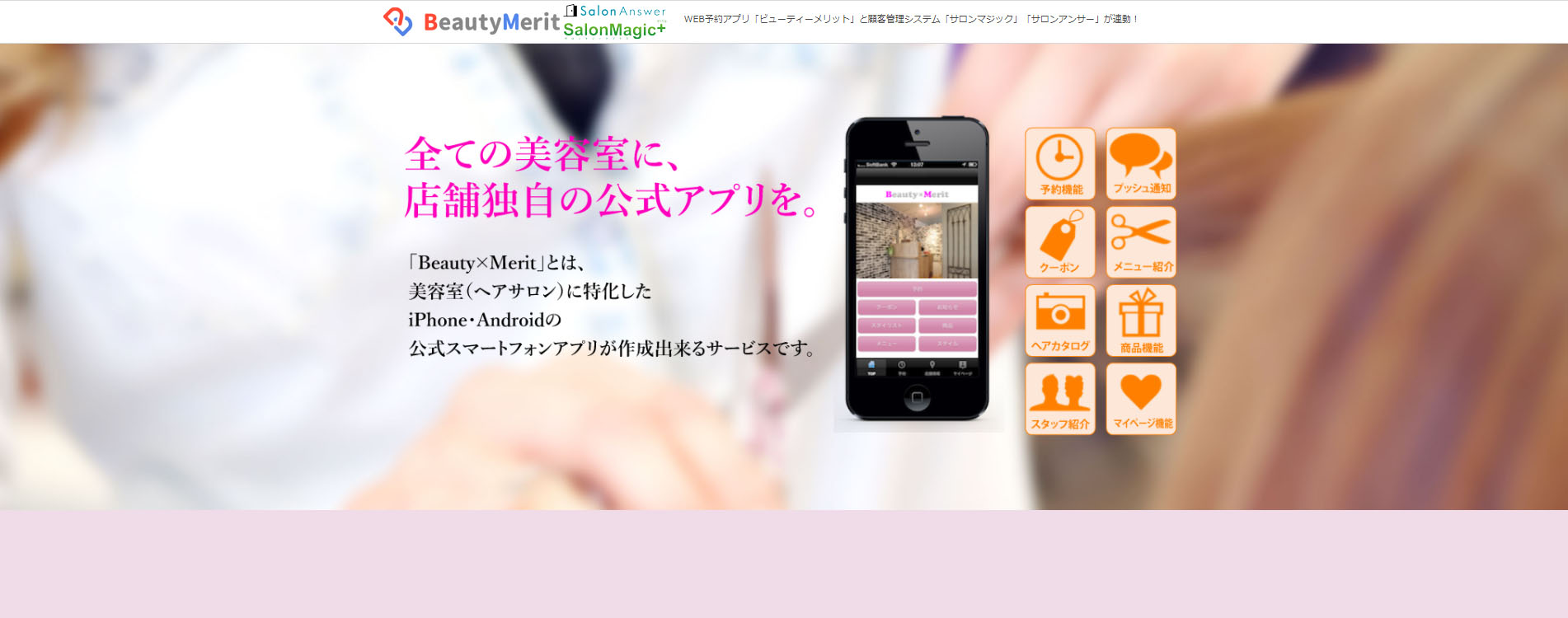 Beauty Meritは美容室をはじめネイルサロンやアイラッシュサロンなどに特化した予約システムです。