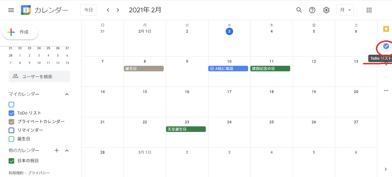 Googleカレンダー上でタスク管理もできます。
