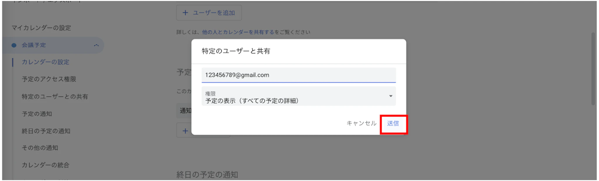 予定を共有したいユーザを追加する