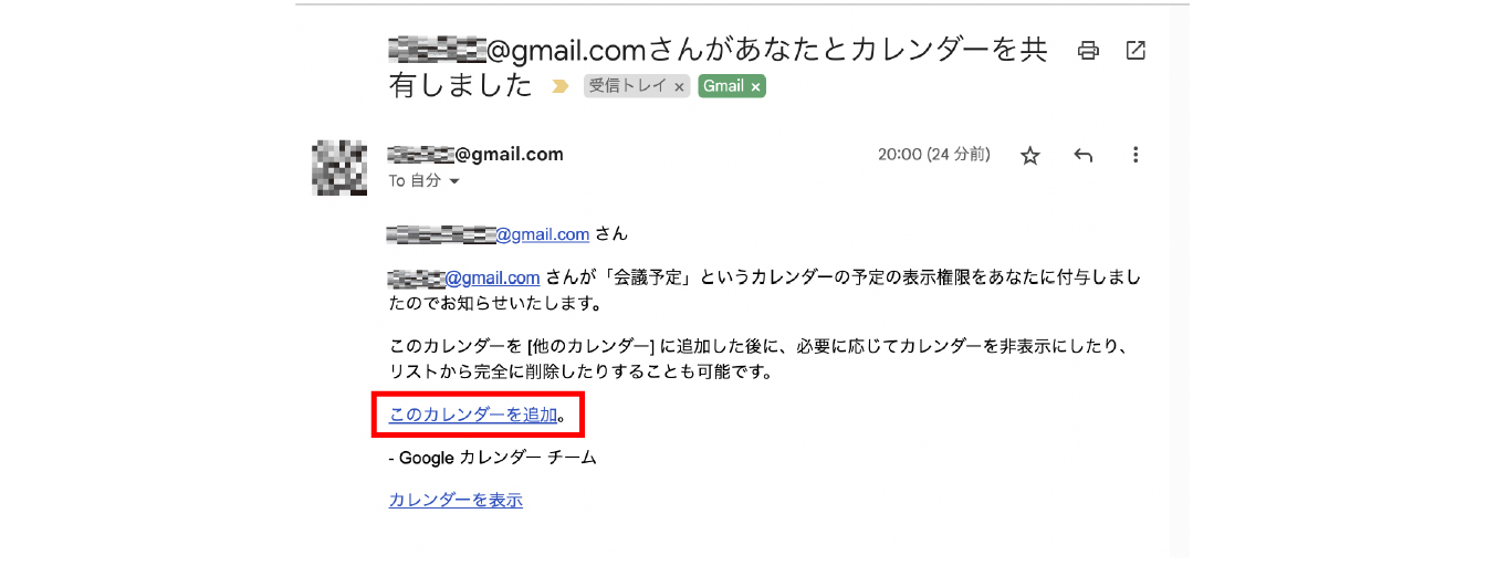 予定を共有されたユーザーのもとに以下のような通知メールが届きます。