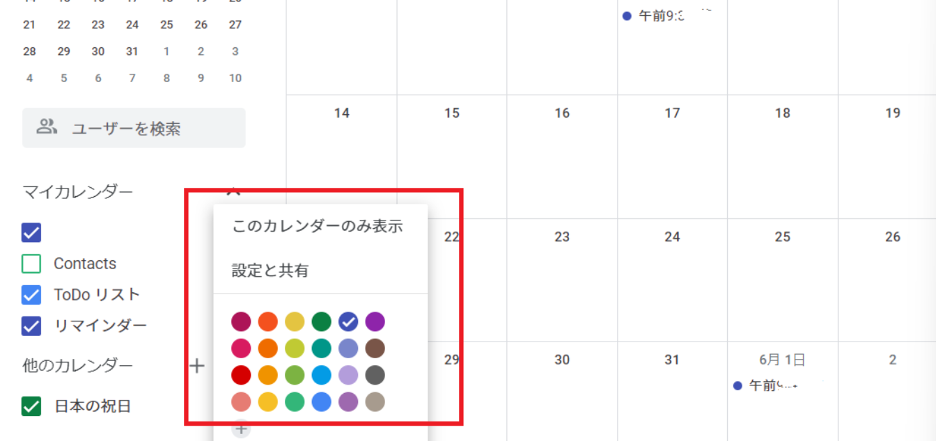 ここでは、パソコンを使ってGoogleカレンダーを色分けする方法を解説していきます。