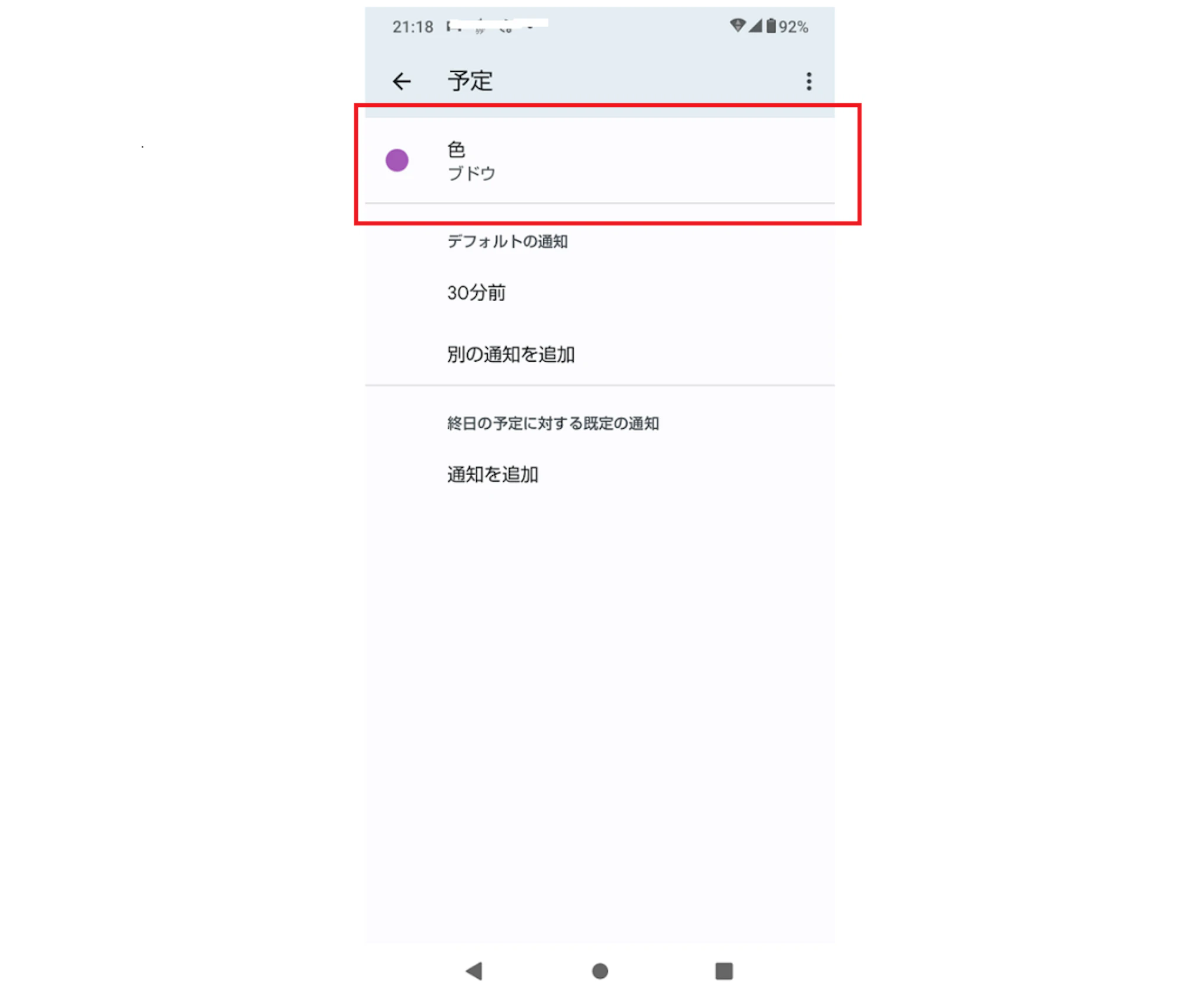 個別の設定ページに移動したら、ほかの予定と同じ色に設定しておきましょう。