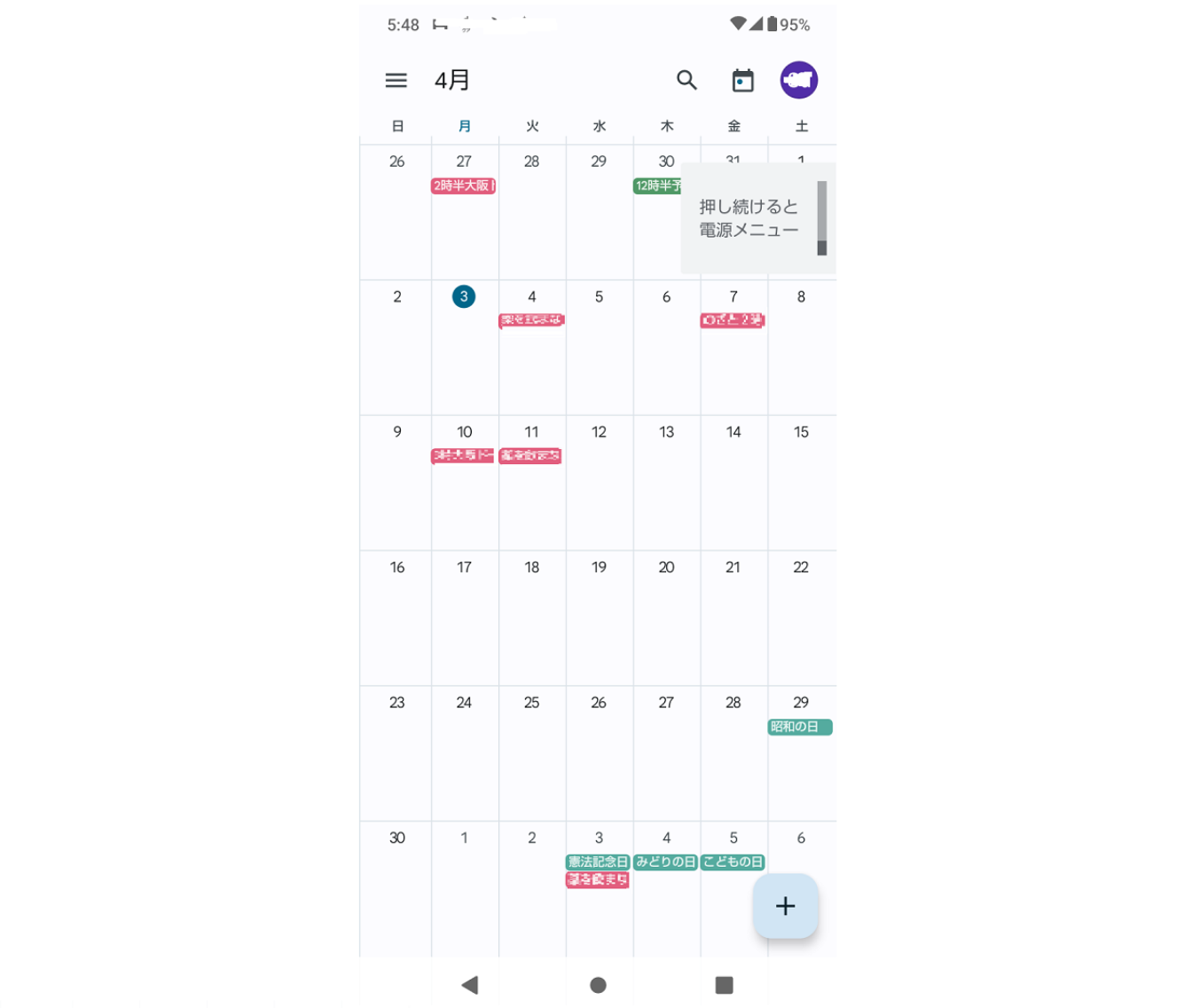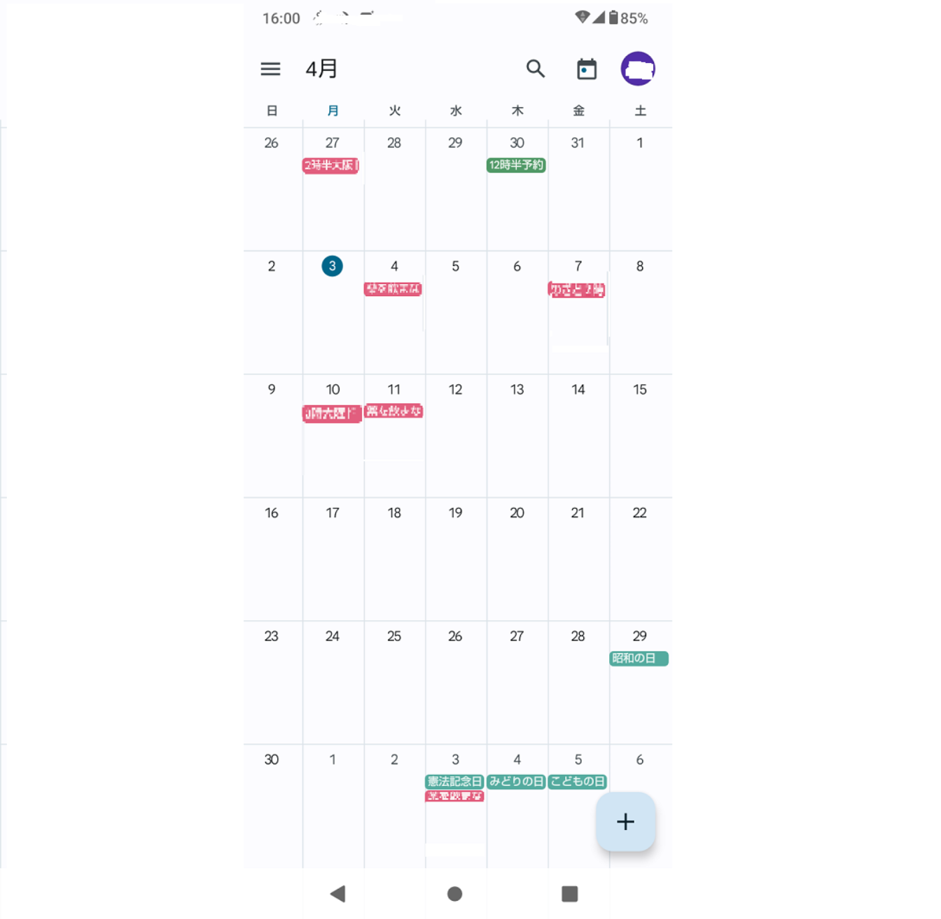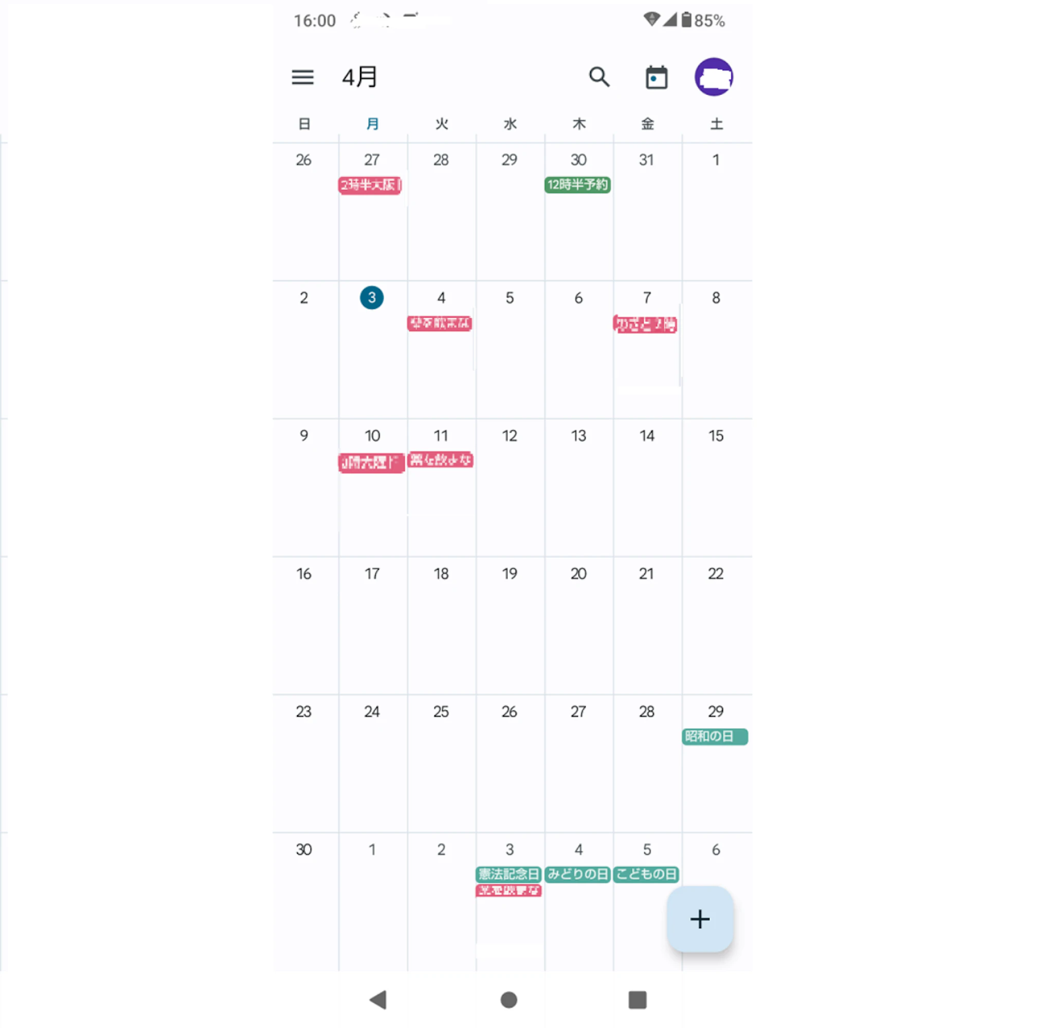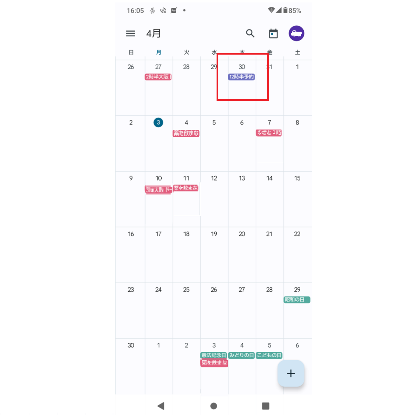 はじめに、スマホからGoogleカレンダーのアプリを開きます。