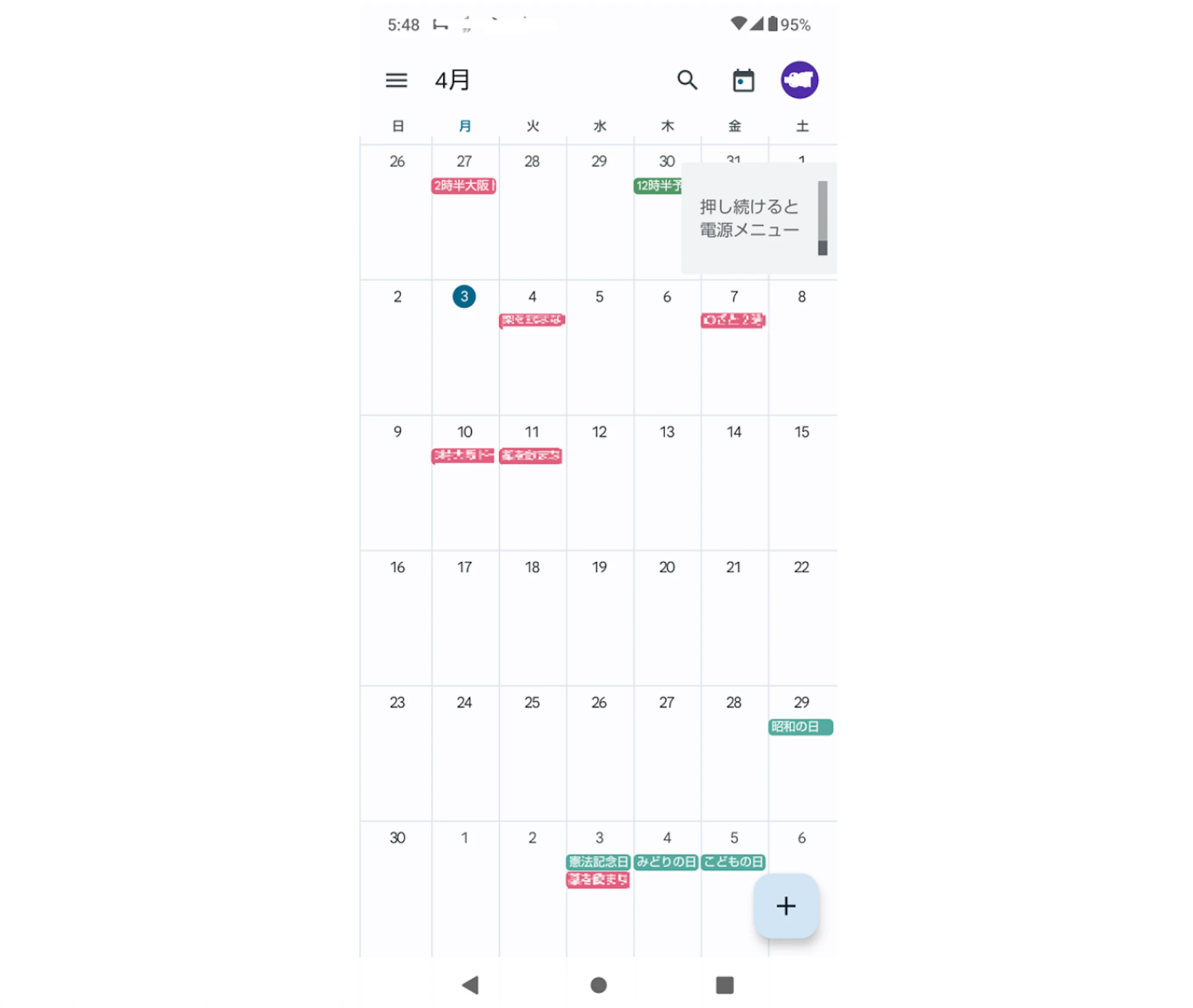 お伝えした通り、登録しているGoogleアカウントごとの設定も簡単にできるので、仕事とプライベートの予定などで色分けできます。
