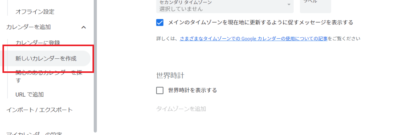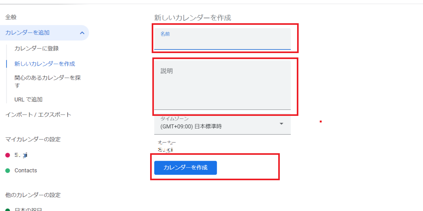 上記の画面で「新しいカレンダーを作成」をクリックしてください。
