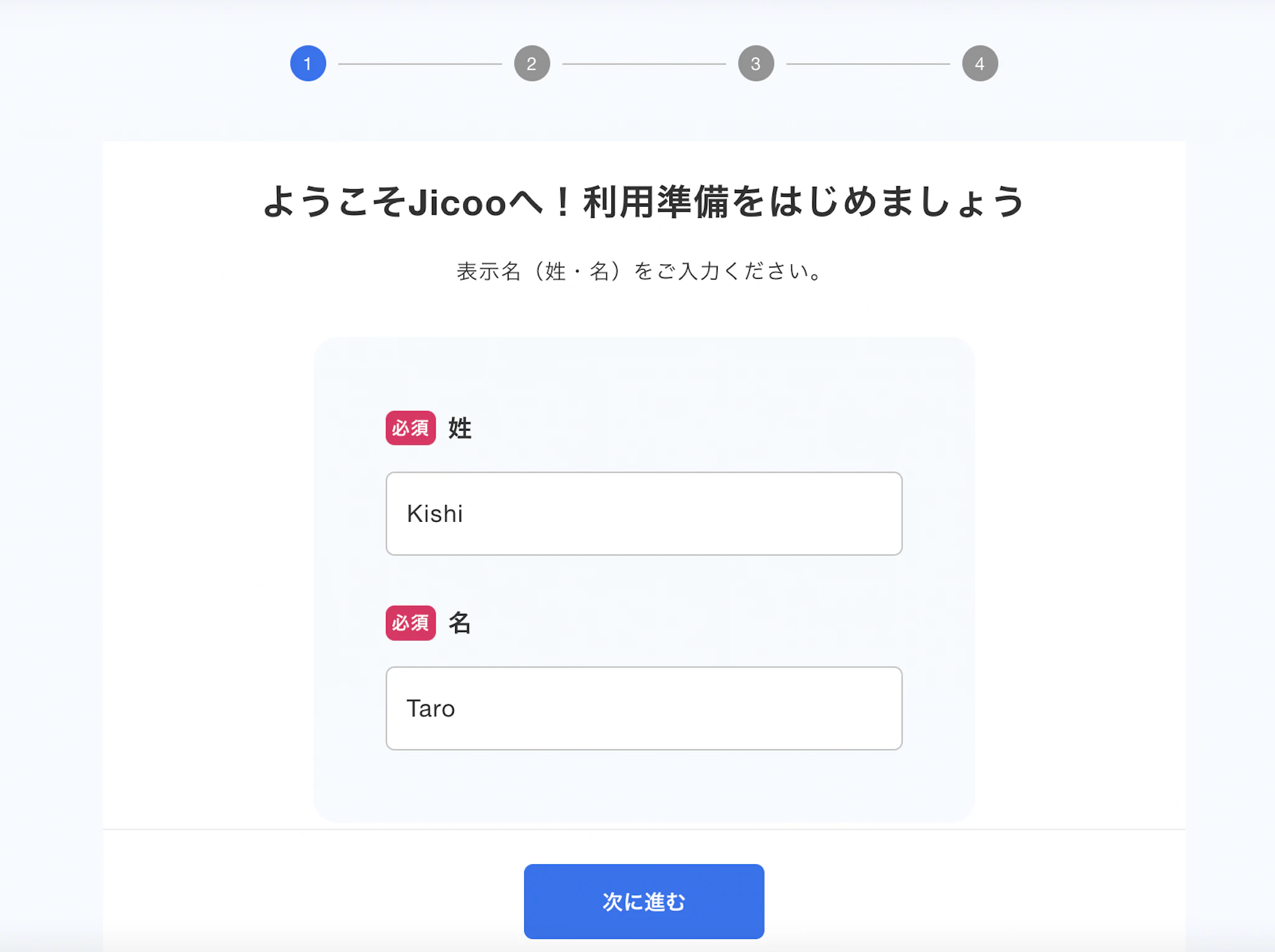 登録ステップはたったの4つです。最初に名前を登録します。