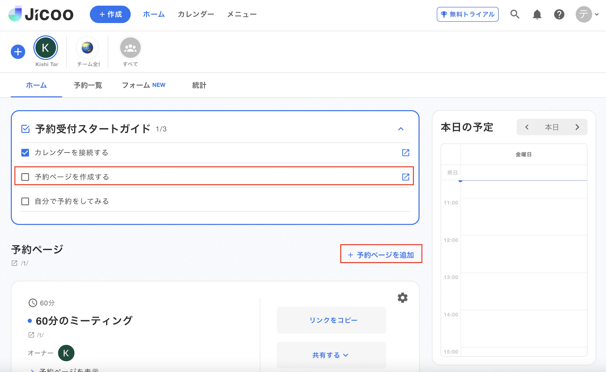 以上で登録が完了します。続けて、予約ページを編集します。
