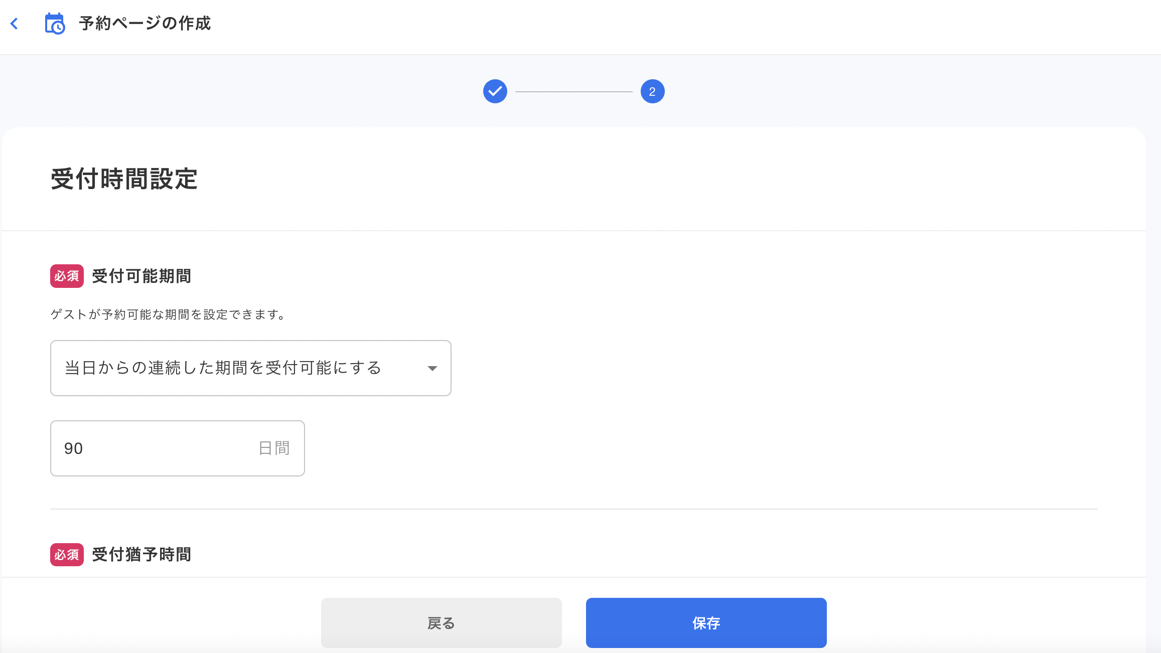 予約を受け付ける時間を設定します。この設定は登録後に予約ページを編集することで変更することができます。