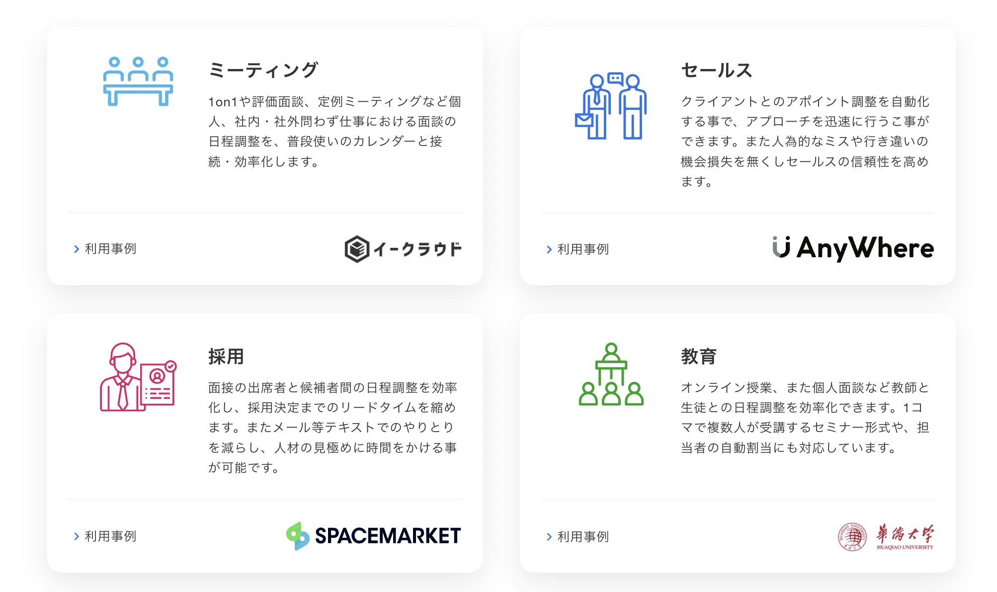 Jicooでの日程調整は個人事業主から大企業まで幅広く活用することができます。ここでは主な職種での利用シーンをご紹介します。