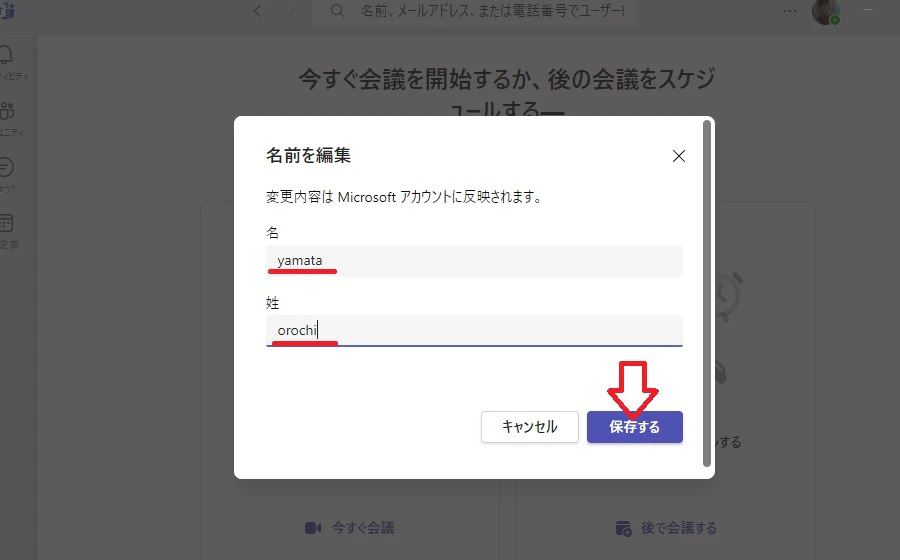 もし、複数の人が同じ名前を使っている場合、Teamsの名前を変更すれば他の人との混同を避けられます。