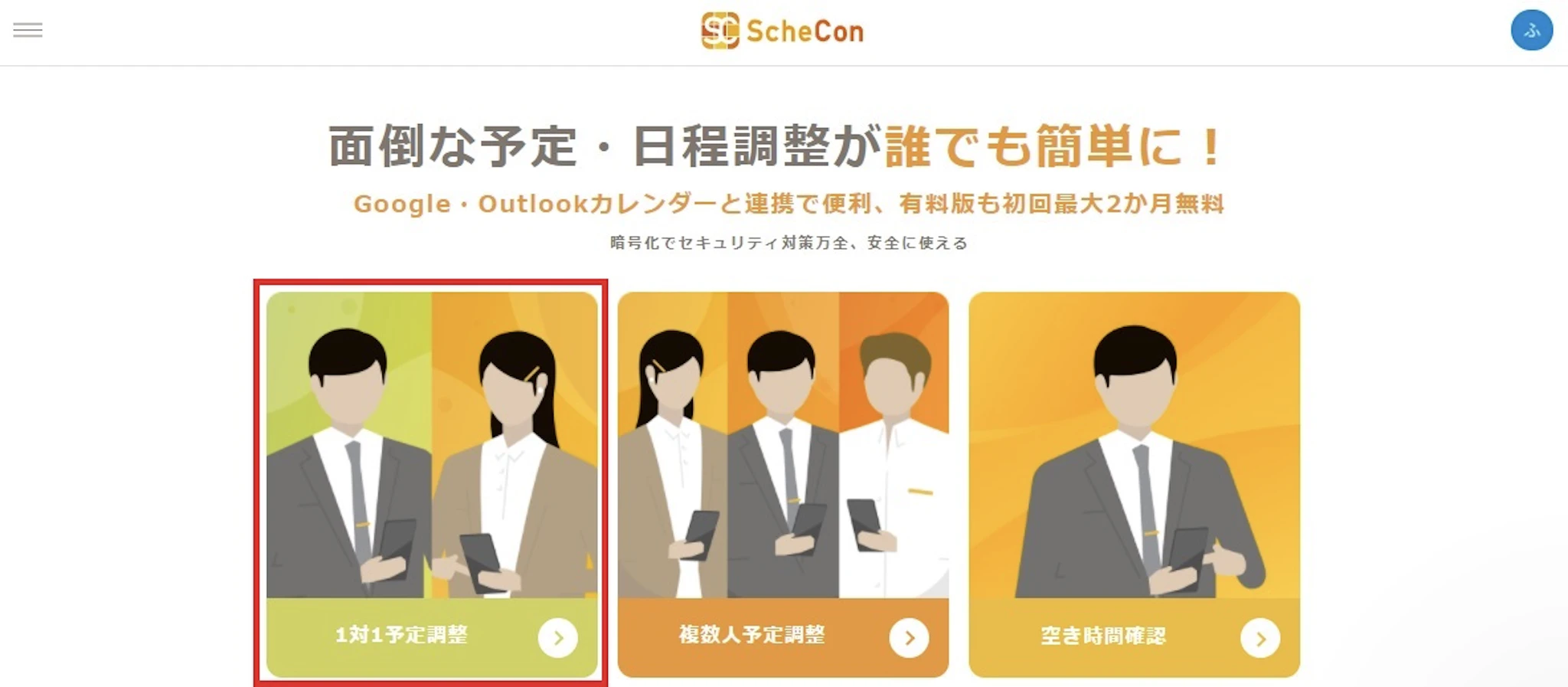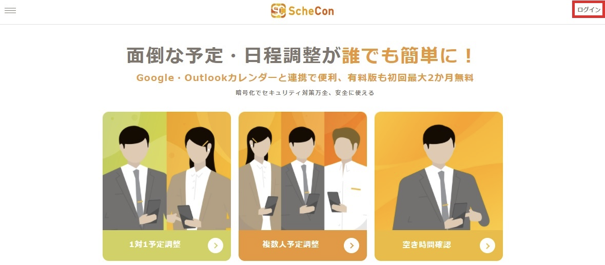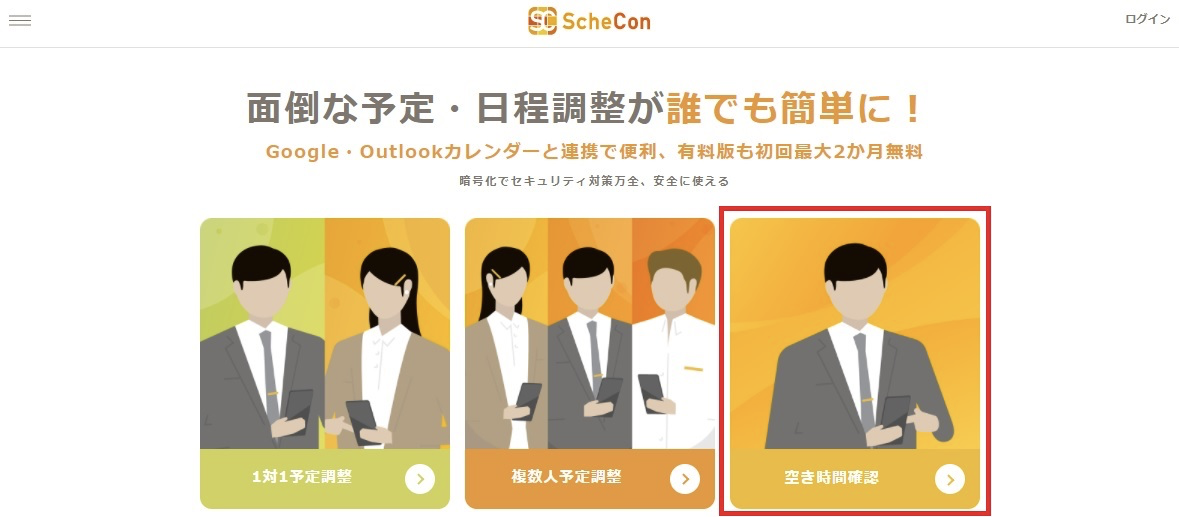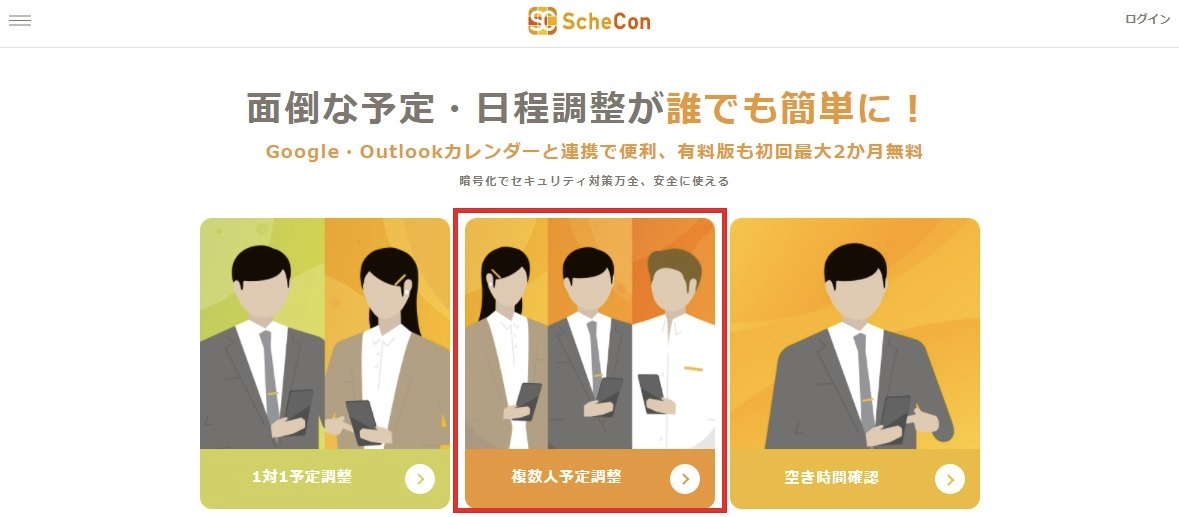 「1対1予定調整」・「複数人予定調整」・「空き時間確認」など主要な機能も使えます。