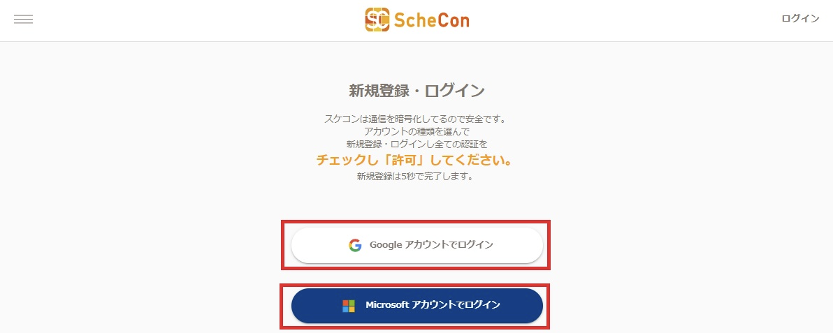 上記の通り、スケコンでは、GoogleアカウントMicrosoftアカウントのいずれかでログインすることが可能です。