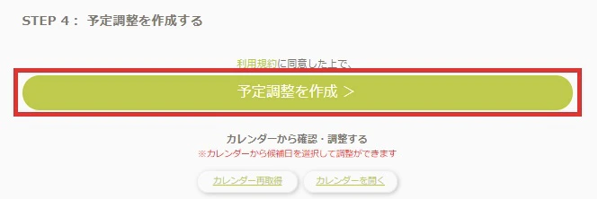 すべて入力したら、STEP4にて「予定調整を作成」をクリックしてください。