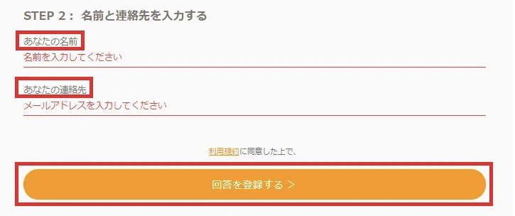 STEP2では名前とメールアドレスを入力してください。