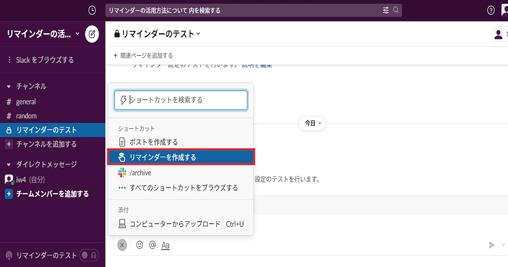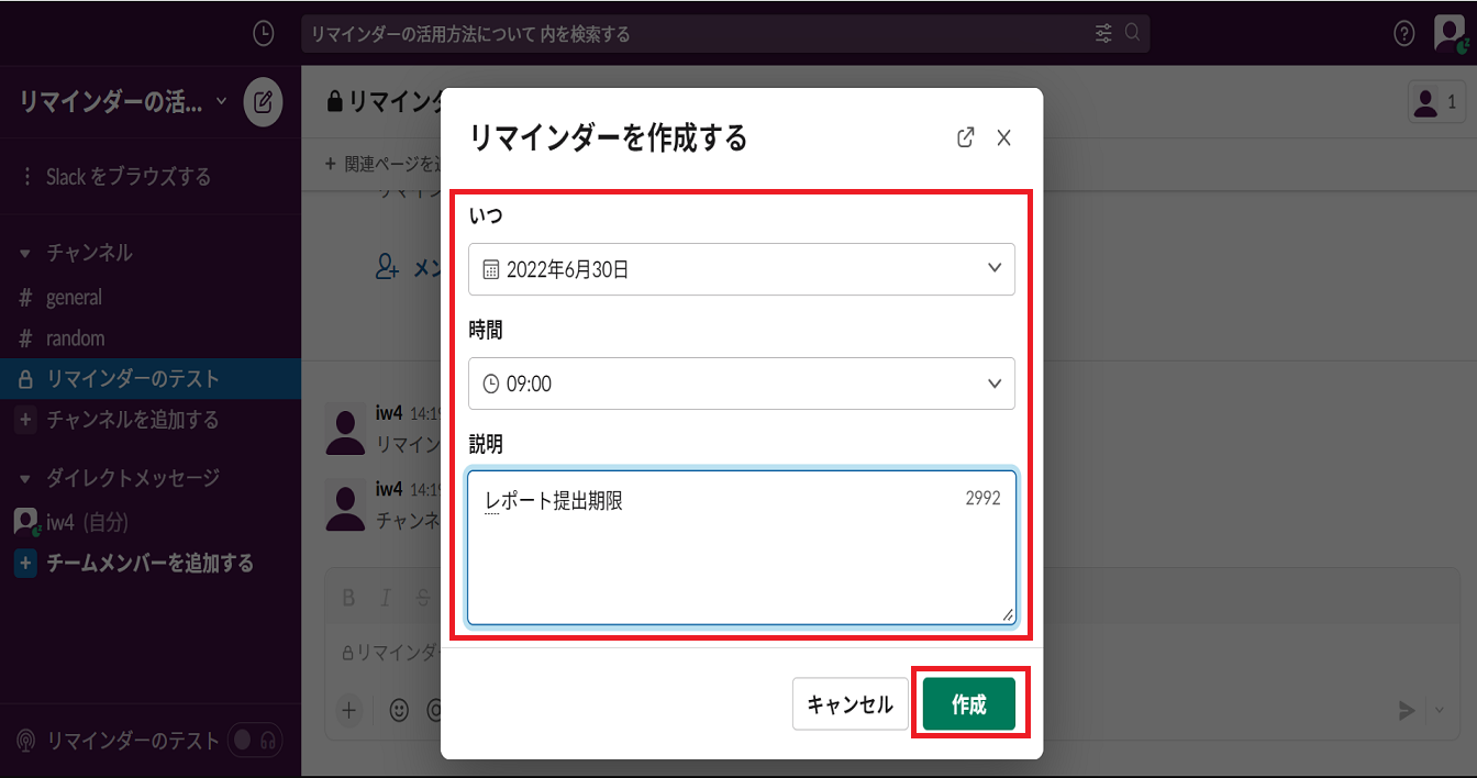 Slackのリマインダーの使い方
