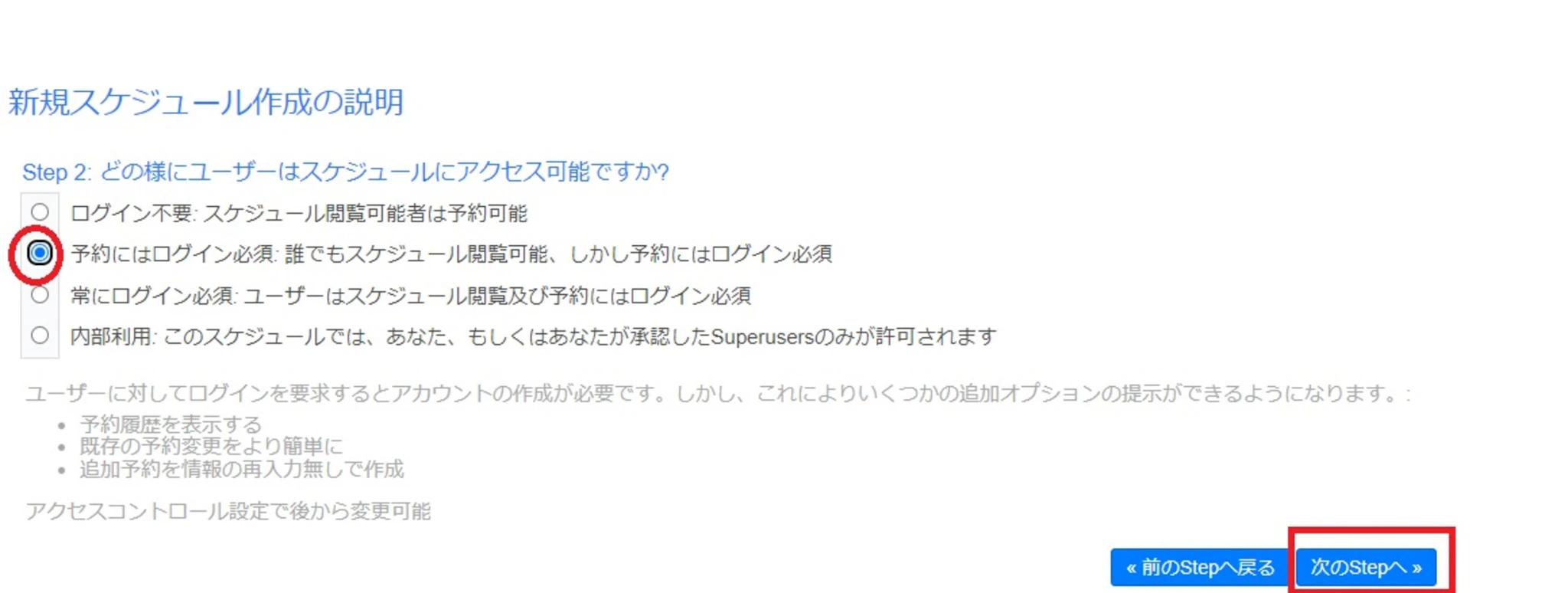 今回は「予約にはログイン必須」を選んでいます。