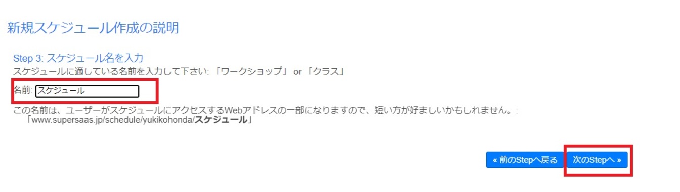 スケジュールの名前を決めてください。今回は「スケジュール」としていますが、わかりやすい名称にしておくと便利です。
