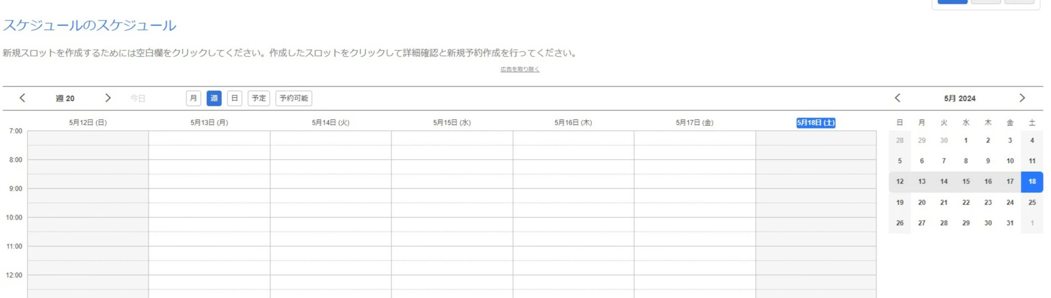 予約画面が完成しました。こちらは日別のスケジュール表示になっていますが、管理画面に戻って月ごとの表示にすることも可能となっています。