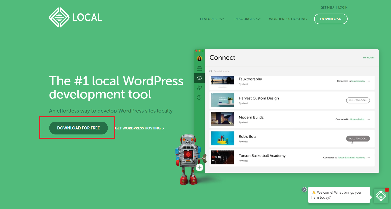 早速Localをダウンロードしてみましょう。Localの公式ページにアクセスし「DOWNLOAD FOR FREE」というボタンをクリックします。